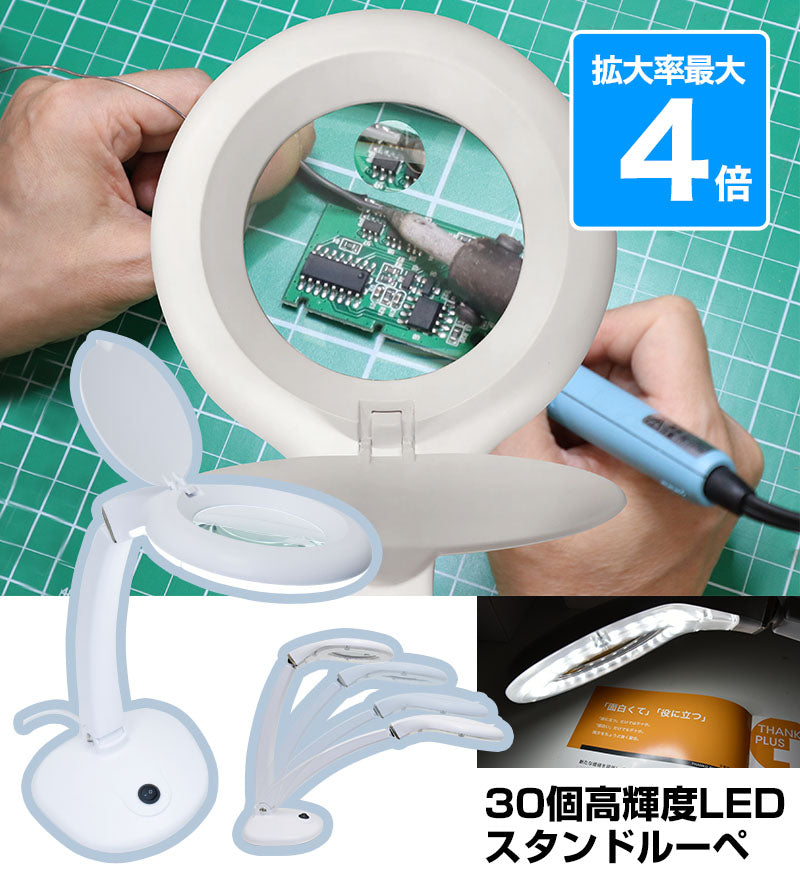 Stand loupe that is the most suitable for precise work. Your hands illuminate with 30 LED light.